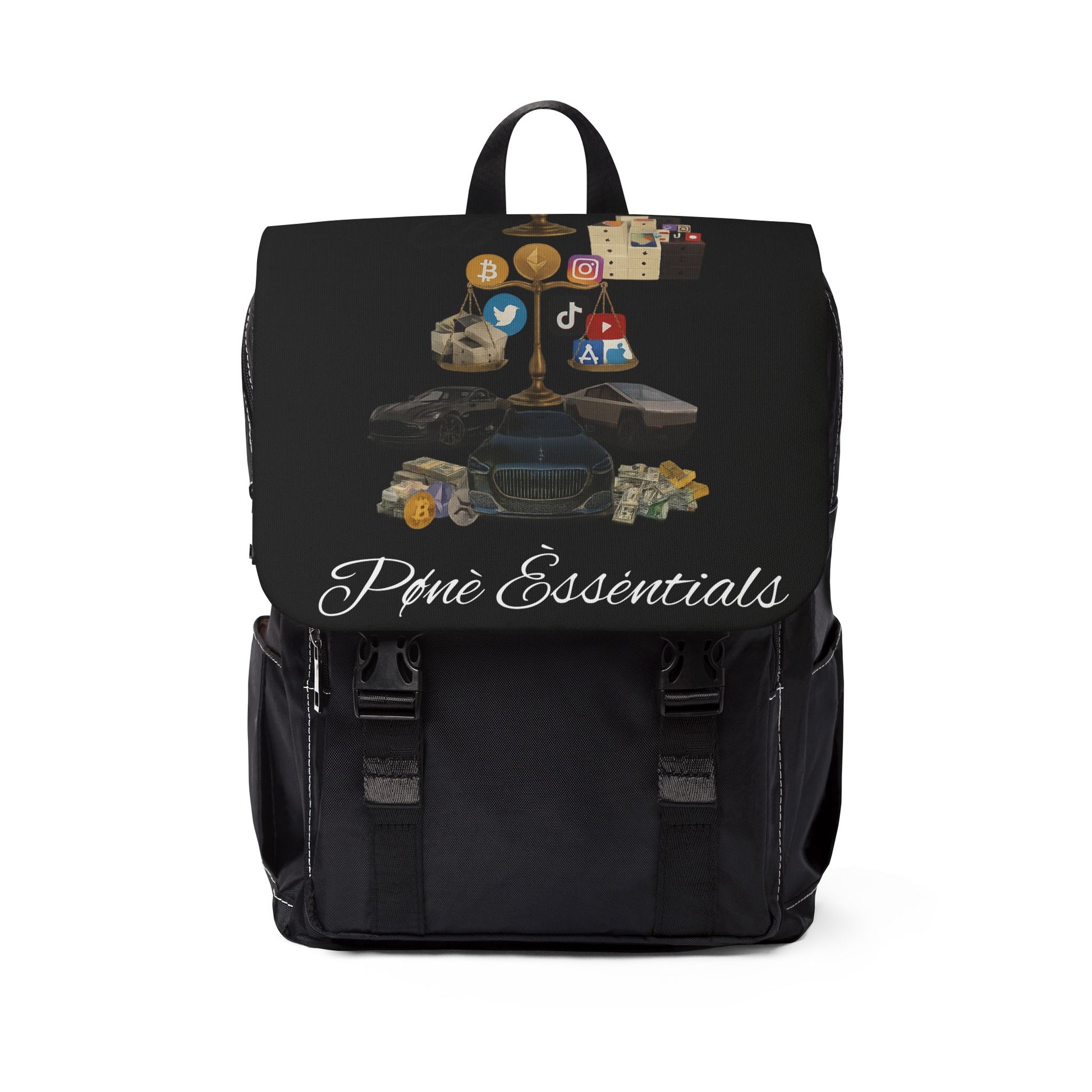 The Pone Pack is a unisex casual shoulder backpack designed for hustlers, thinkers, and creators on the go. It is a daily reminder of your goals, featuring clean lines and bold symbolism. With spacious compartments, durable materials, and a signature CB heart logo, this backpack balances function and fashion. Whether you're heading to the gym, the studio, or out and about, the Pone Pack moves with you and is styled for the moment. It is perfect for those who are always on the move and want to make a statement.